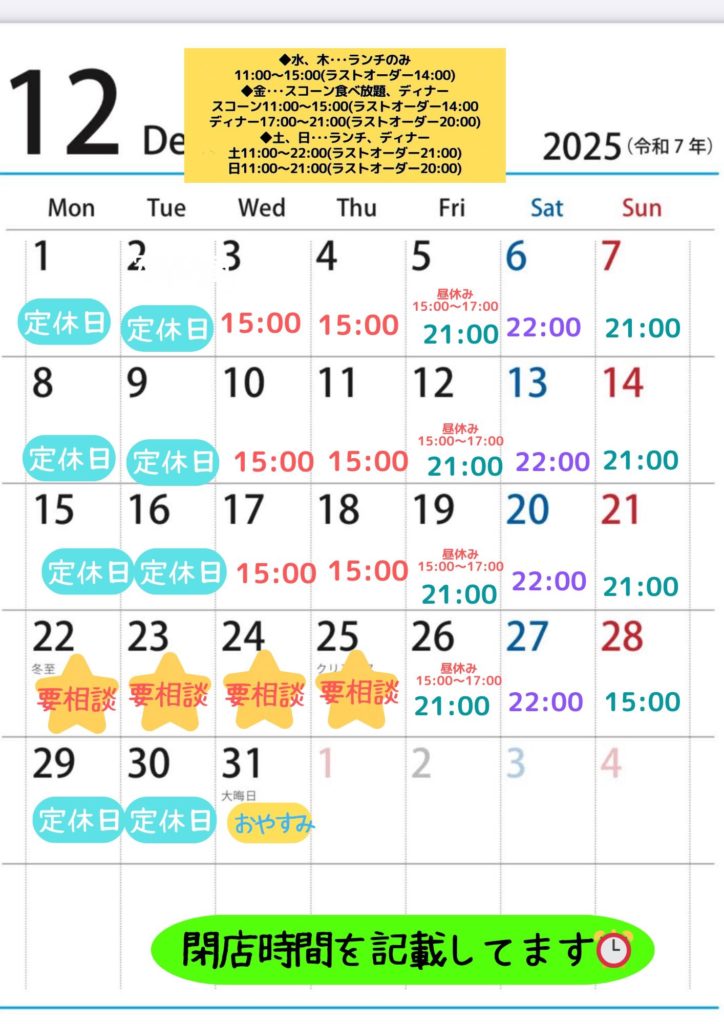 ご予約お待ちしております! 12/22、23は月曜火曜ですがご相談ください!