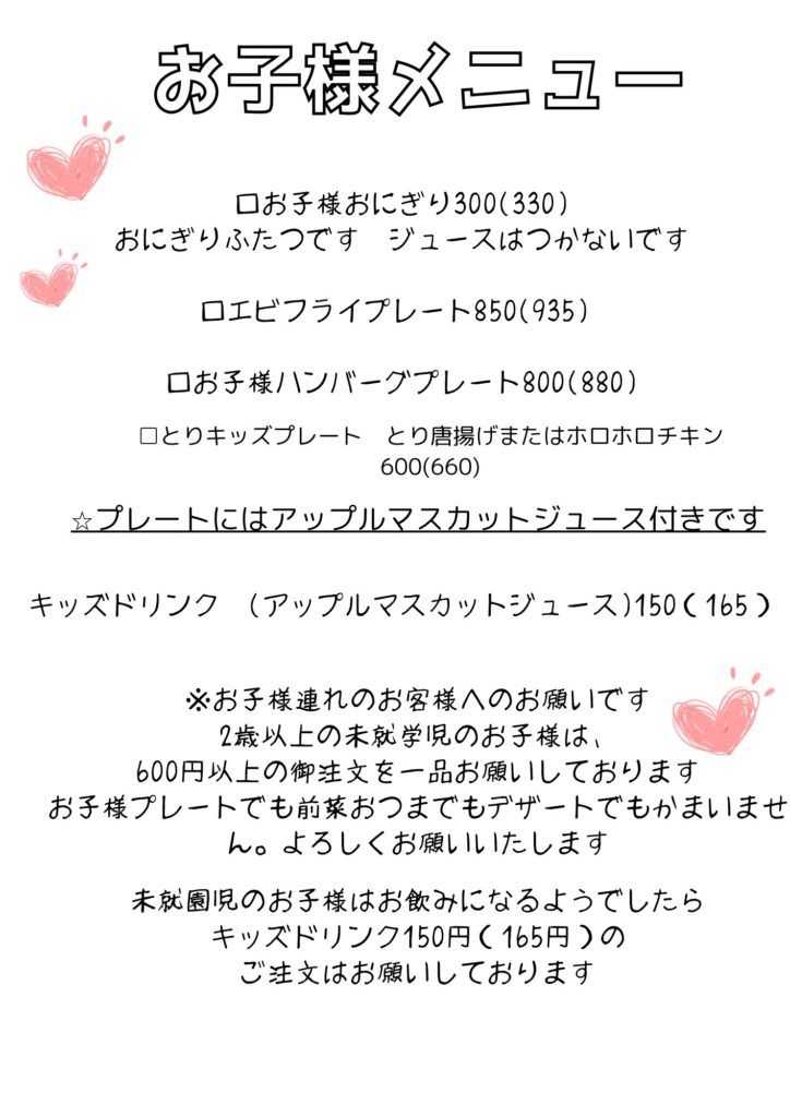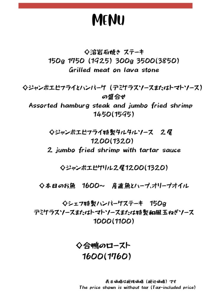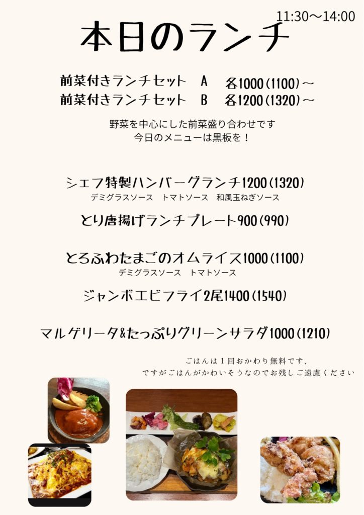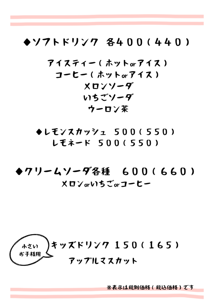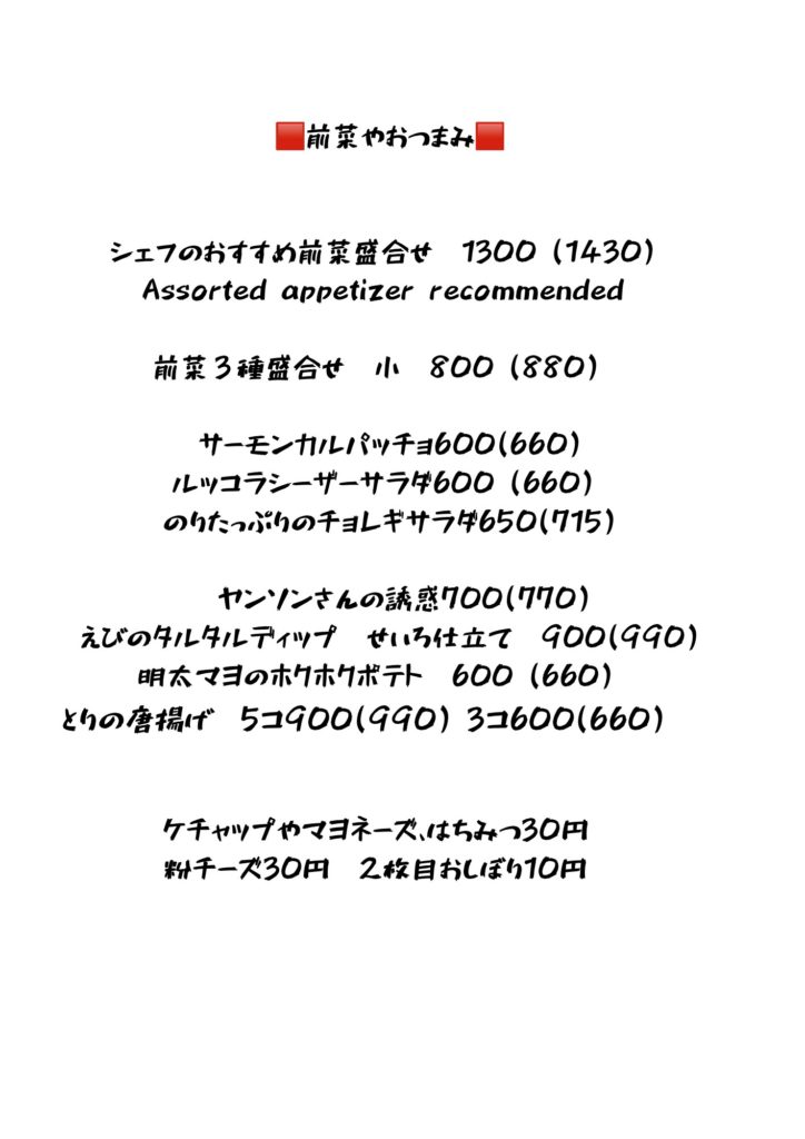 持ち帰りのメニュー